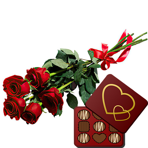 5 красных роз с конфетами